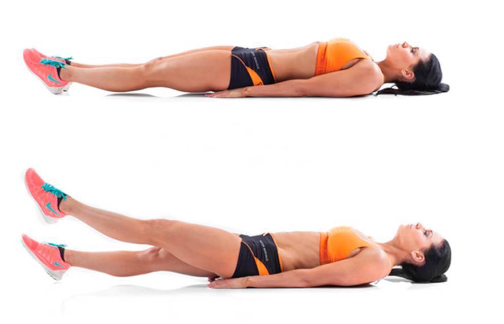 Лягте на спину, ноги выпрямите, руки положите вдоль туловища – это исходное положение.