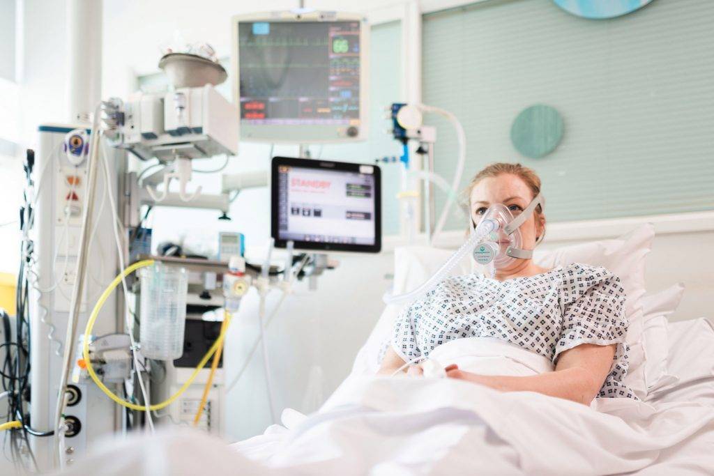 Учитывая наличие дыхательной недостаточности, тяжелая форма — показание к назначению кислородной поддержки для нормализации газового состава крови. С учетом степени нарушений проводится кислородотерапия с помощью ротоносовой маски, неинвазивные методы вентиляции легких в режиме СИПАП-терапии, а крайне тяжелое состояние — показание для перевода пациента на ИВЛ.