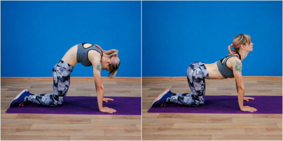 Основной плюс данного упражнения заключается в том, что оно является максимально естественным для человеческого тела. Ведь с его помощью шея, голова, а также позвоночный столб принимает вполне естественное положение. Во время выдоха следует прогибаться позвоночником вверх, как это делает рассерженная кошка. Когда происходит вдох, двигаться нужно наоборот вниз. Движения головы, в свою очередь, являются противоположными. То есть на вдохе она направлена вверх, а на выдохе – вниз. Дыхание при этом должно оставаться мощным. По мере того как развивается гибкость, есть возможность увеличения скорости движений.