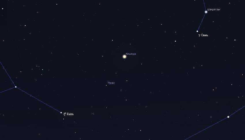 Соединение Венеры и Урана 9 марта 2020 года. Рисунок: Stellarium