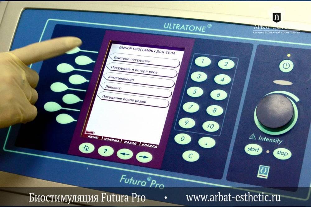 Биостимуляция на аппарате «FuturaPro» – это уникальная процедура, сочетающая в себе микротоковое, световое и ультразвуковое воздействие. Она абсолютно безболезненна и чрезвычайно результативна. Проводится в амбулаторных условиях и длится около часа. На теле пациента закрепляются электроды, по которым проводится энергия. Она доставляется в подкожно-жировую клетчатку и глубокие мышцы.