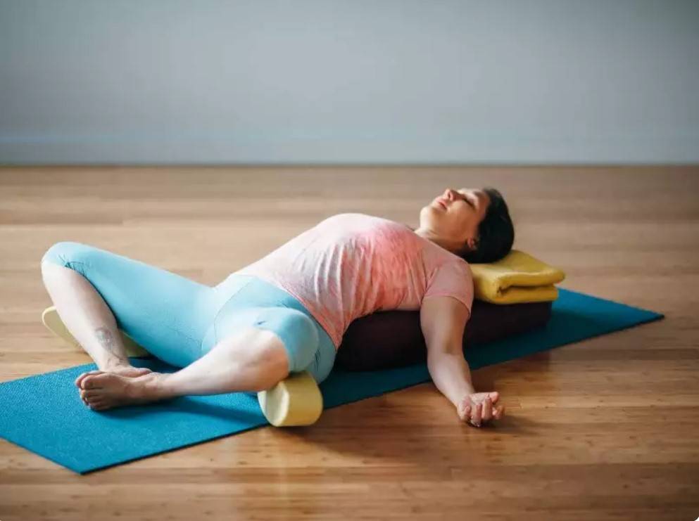 Эта асана является успокаивающей, а также она помогает расслабить некоторые мышцы тела. Если вы используете ее в качестве восстановительной позы, то ваше положение должно быть максимально комфортным, а тело – иметь достаточную опору. Цель упражнения заключается в том, чтобы сохранять это положение, пока сила тяжести улучшает вашу растяжку, в то время как вы очищаете свой разум. Вы можете использовать ее в любое время дня. Она расслабляет и успокаивает разум. Группа мышц, которая называется сгибатели бедра, напрягается, когда вы проводите много времени сидя. Растяжение их в этом случае может помочь облегчить и предотвратить боль в пояснице.