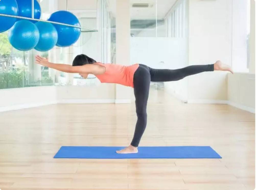 Теперь из положения выпада вытяните руки вперед, на одном уровне параллельно полу и ладонями друг к другу. Синхронизируйте выпрямление передней ноги и подъем задней. Не позволяйте туловищу качаться вперед при перемещении в нужное положение.