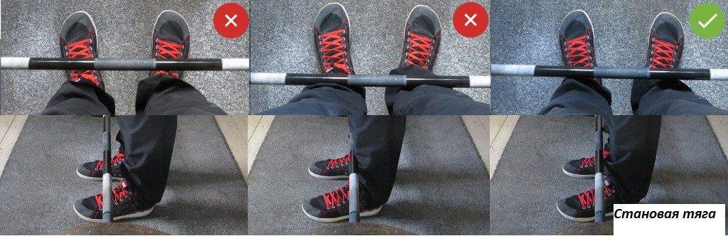 - Если вначале движения стать от штанги даже на небольшом расстоянии между грифом и голенью ног, то во время старта можно потерять равновесие.