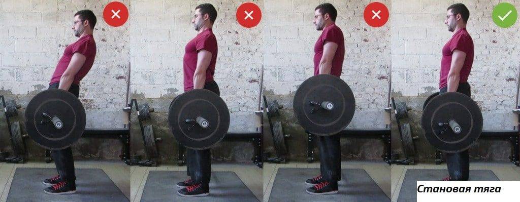- дисбаланс в развитии различных групп мышц (ослабленные мышцы брюшного пресса вызывают дополнительный прогиб вперед позвонков поясничного отдела, что приводит к неравномерному распределению нагрузки при выполнении становой тяги).