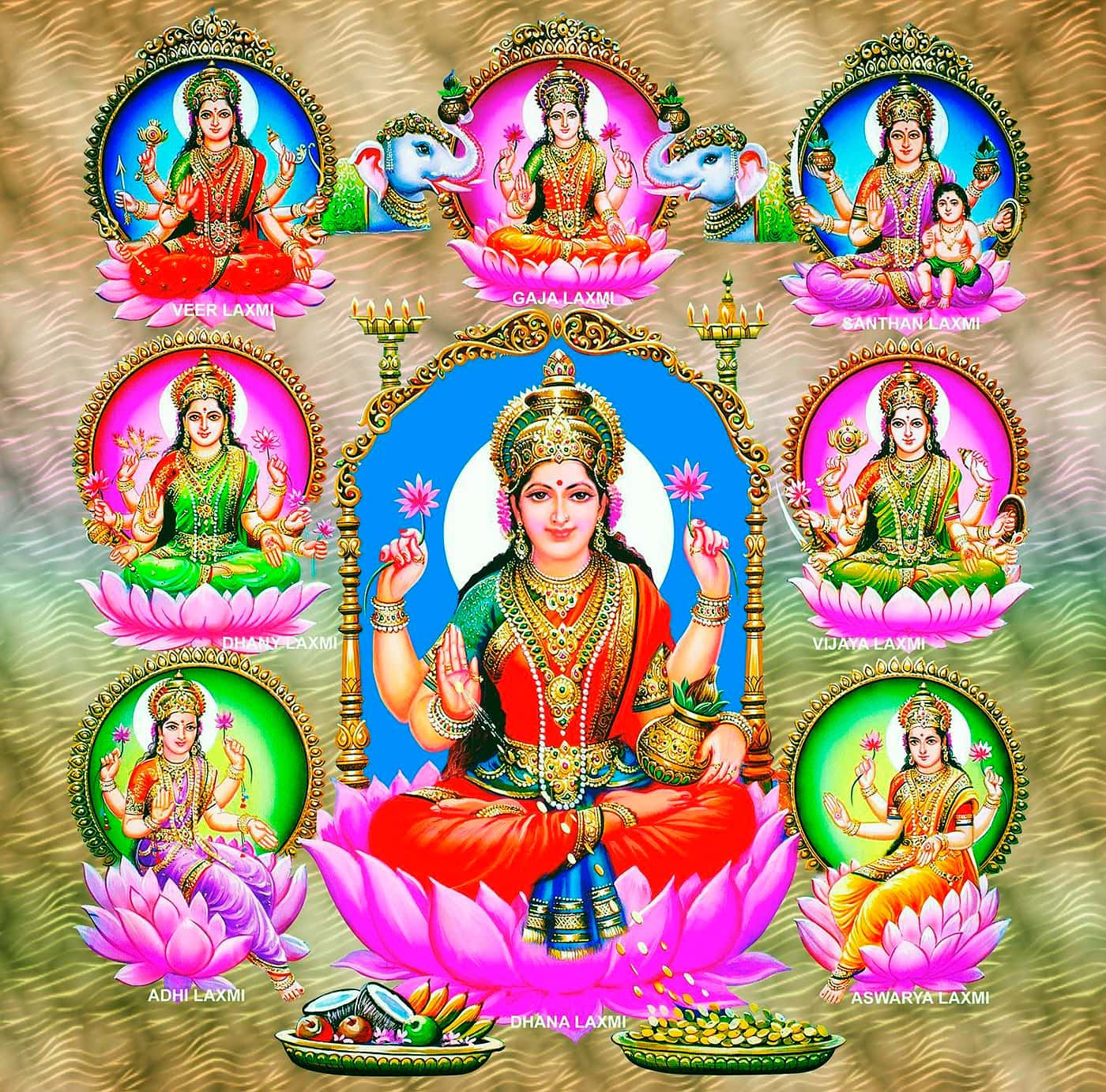 Ашталакшми (Ашта-Лакшми) с санскрита переводится как «восемь Лакшми». Когда упоминают это слово, то имеют в виду вторичные проявления индийской богини, которые представлены группой женских богинь. Эти индийские божества также называют аватарами Лакшми. Все они символизируют различные формы благополучия: потомство, власть, процветание, сила, знание, здоровье. В честь Ашталакшми создают фигурки, тематически украшают их, посвящают им гимны и печатные изображения.