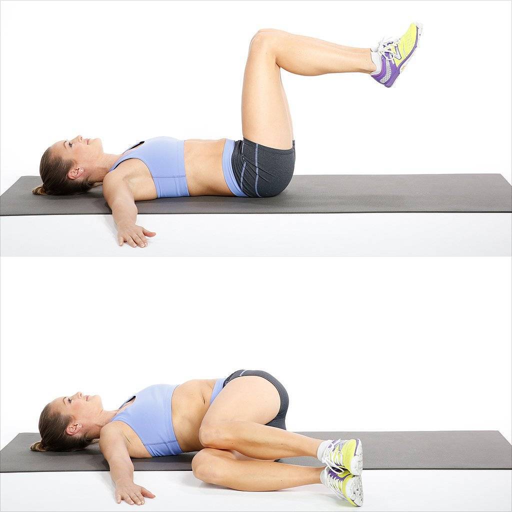 - Продолжая напрягать мышцы, медленно опустите ноги в исходное положение, не касаясь пола.