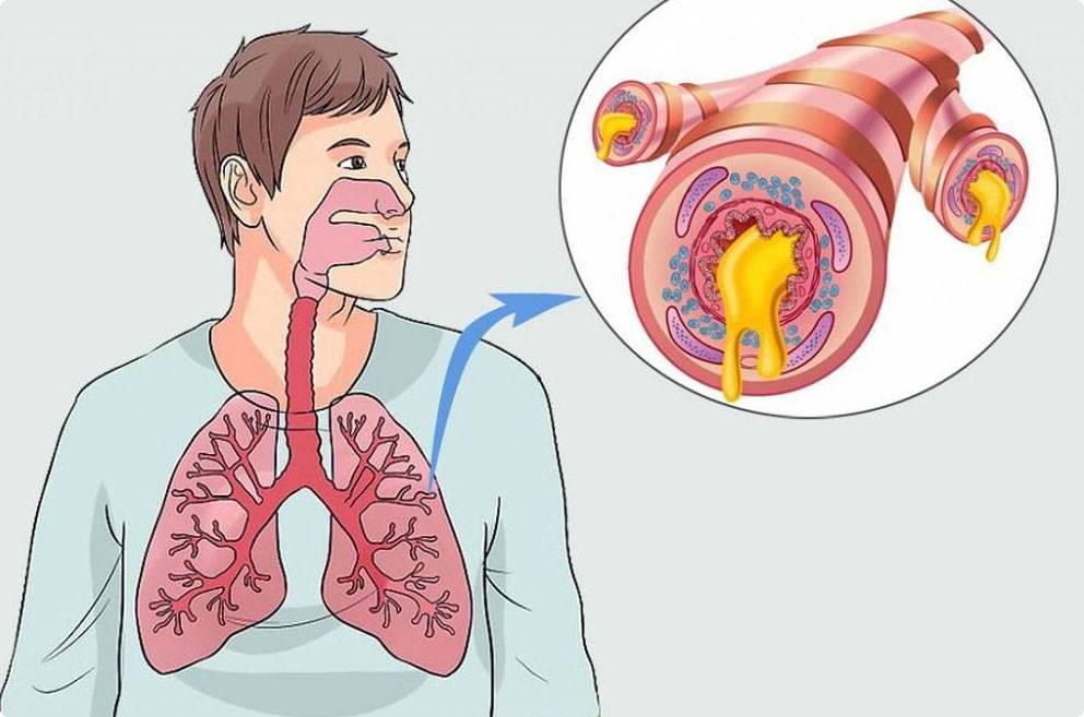 Затем сокращается гладкие мышечные волокна в стенке бронхов, из-за чего развивается бронхоспазм. Бокаловидные клетки активизируют выделение бронхиального секрета. Слизь имеет повышенную вязкость. Возникает расстройство работы реснитчатого эпителия. Формируется мукоцилиарная недостаточность. Нарушается процесс откашливания мокроты.