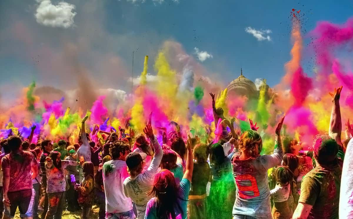 Старинная традиция посыпания людей пеплом, что остался после догорания праздничного кострища и всемирно известная симпатия индусов к ярким оттенкам, соединились в единое целое на фестивале Холи. В ходе этого праздника люди активно осыпают всех прохожих разноцветной пудрой и поливают водой, с пожеланиями счастья и любви.