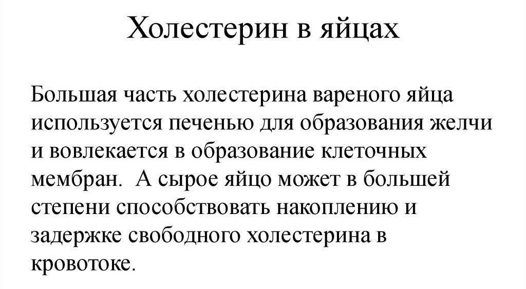 Ученые провели ряд исследований и пришли к выводу, что повышение концентрации холестерола в крови – результат воздействия транс-жиров и насыщенных жиров. Яйца имеют к данной проблеме минимальное отношение.