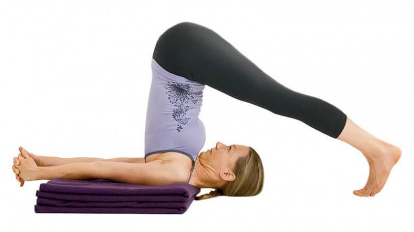 - Лёжа на полу, под голову можно при желании положить подушку, а под ноги — валик. Постарайтесь расслабить всё тело, от кончиков ног до век, и несколько минут дышите ровно. Затем перевернитесь набок, валик зажмите между ног, полежите ещё несколько минут. Эта поза позволяет отдохнуть и прийти в спокойное состояние.