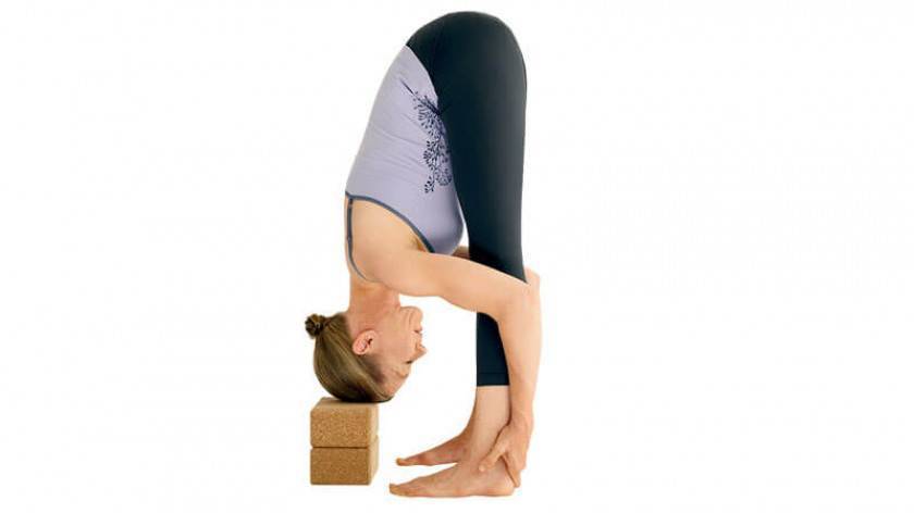 - Сидя на полу, руки сзади, ноги расставить широко, выпрямив спину. Поставить локти перед собой и задержаться на 15–20 секунд (Упавиштха Конасана). Упражнение укрепляет позвоночник, растягивает мышцы на внутренней стороне бёдер.