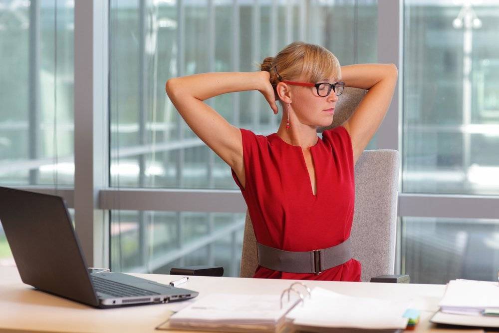 - Шея. Откиньте голову назад, медленно поворачивайте ею из стороны в сторону, затем расслабьтесь. Притяните плечевые суставы высоко к ушам и в таком положении наклоняйте подбородок к груди.