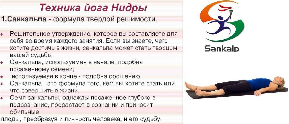 На санскрите это слово означает “решение” или “решимость”. Это основная часть практики, намерения, которые закладываются в занятие. Установка помогает личности найти свой путь, понять нереализованные желания и довериться судьбе. Однако, результатов стоит ждать только при правильно сформированном намерении – прежде всего нужно понять, чего хочется в жизни (например, профессию, в которой планируется добиться высот). И йога-нидра, подкрепленная санкальпой, будет работать с подсознанием и бессознательным над выбранным направлением.