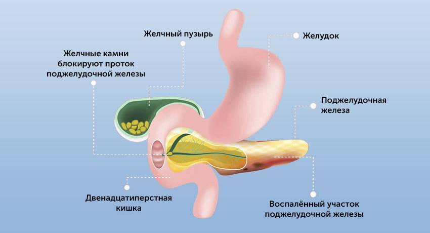 Или это может быть блокировка панкреатического сока при желчекаменной болезни, дискинезии желчевыводящих путей (билиарный панкреатит). В этом случае желчь поступает в 12-перстную кишку в виде резких выбросов. Это может стать причиной обратного заброса панкреатического сока и самопереваривания поджелудочной железы.