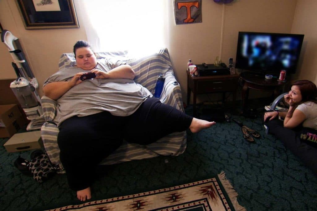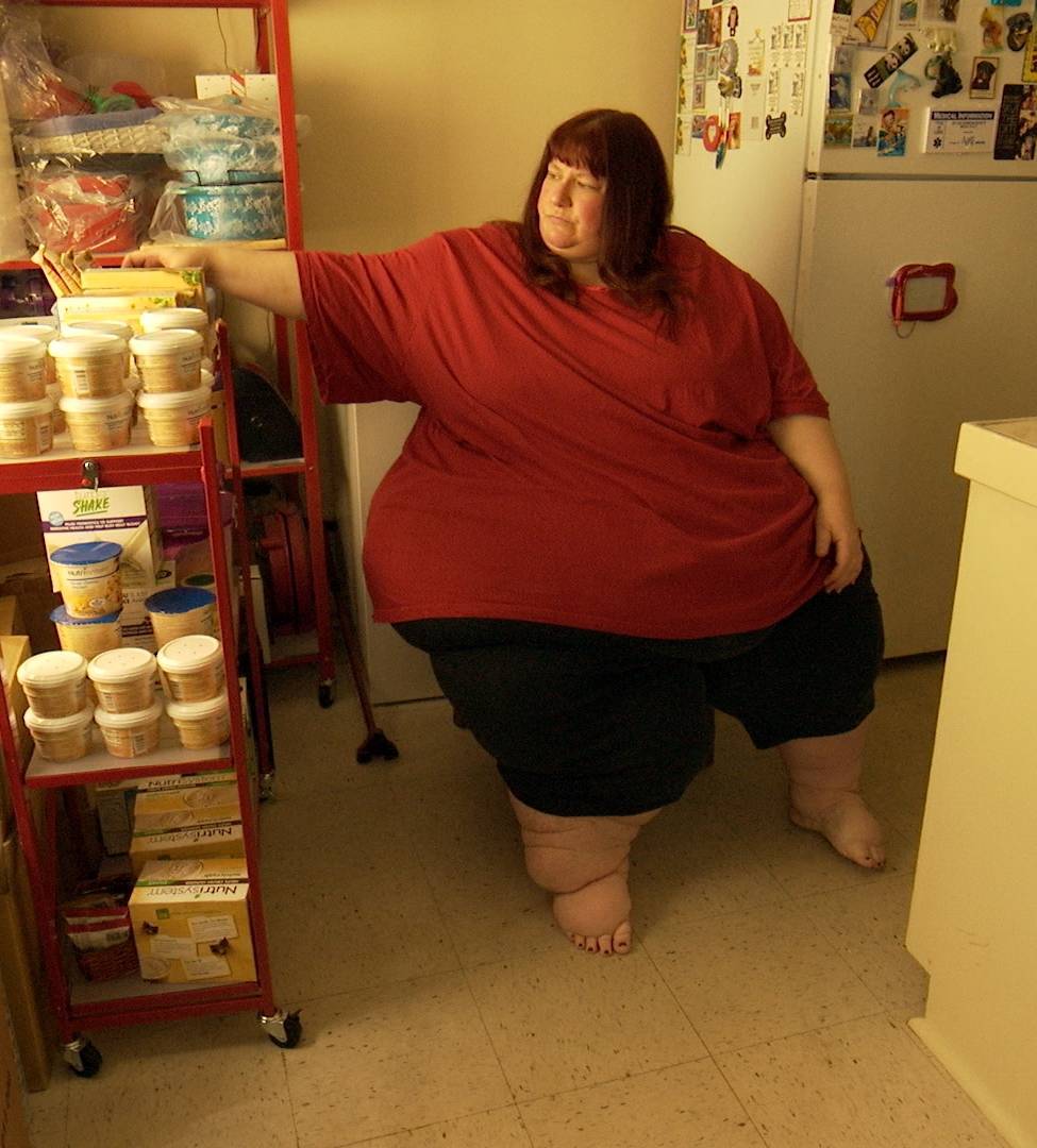 Дело в том, что людям с таким большим весом очень важно ежедневно принимать душ и промывать буквально каждый сантиметр тела, иначе могут образоваться пролежни — самостоятельно, конечно, делать это при таком весе сложно. Ела она, по ее словам, минимум 5 обедов в день, не считая огромного количества сладостей. Кстати, в этой передаче очень заметно, что ее герои питаются только фастфудом, при чем двойными порциями