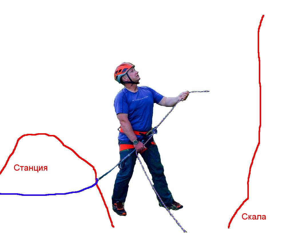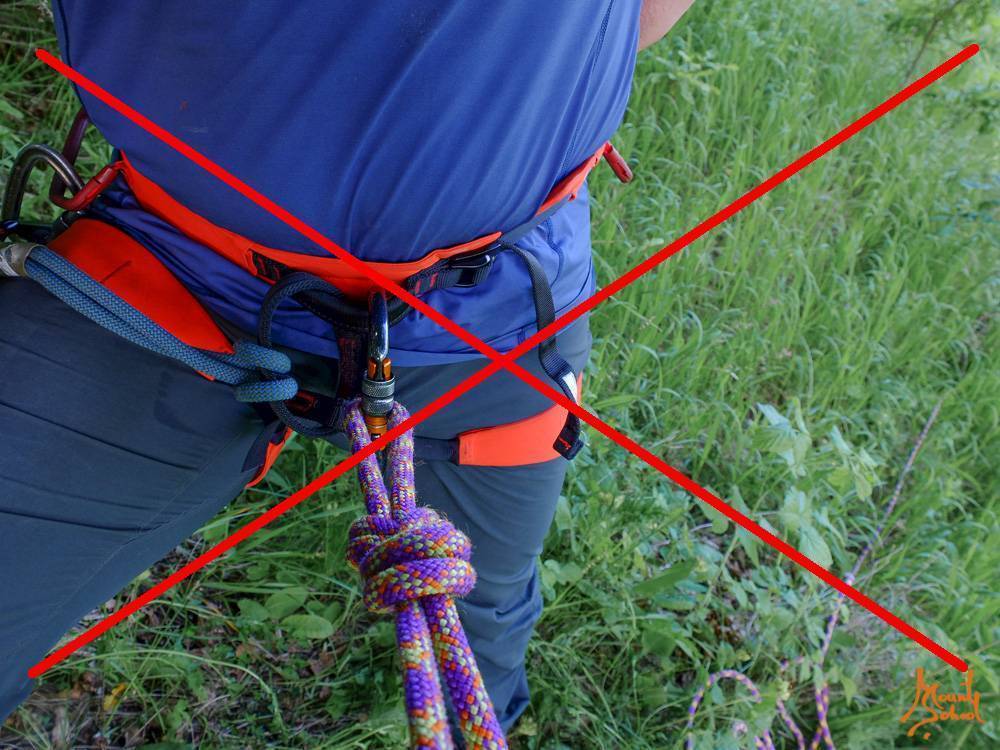 Также веревка может быть привязана к страховочной системе страхующего или станции.