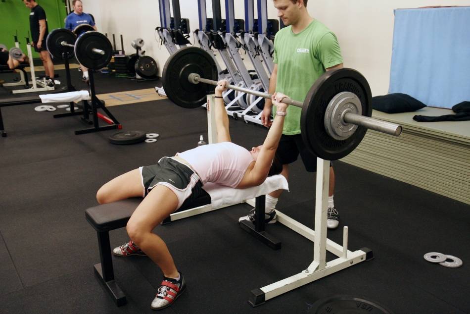 Специалисты рекомендуют использовать силовую раму, но обязательно с присутствием страхующего партнера – только тогда можно будет поднимать максимально возможный для вас вес и постепенно увеличить вес в жиме лежа.