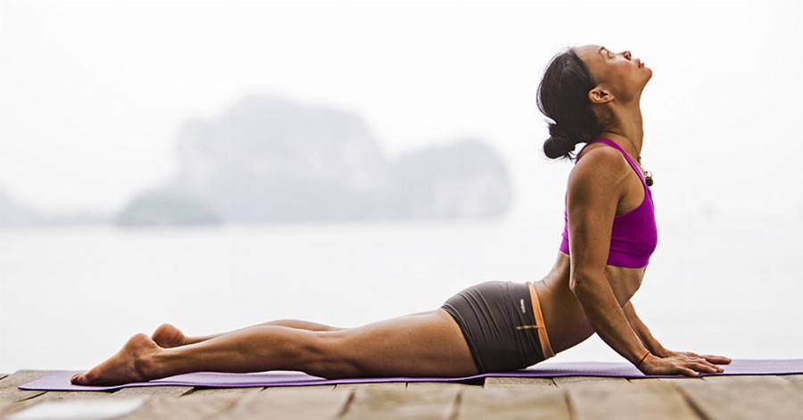 Поза кобры очень похожа на позу собаки, смотрящей вверх, но она немного проще в выполнении и более щадящая для спины.