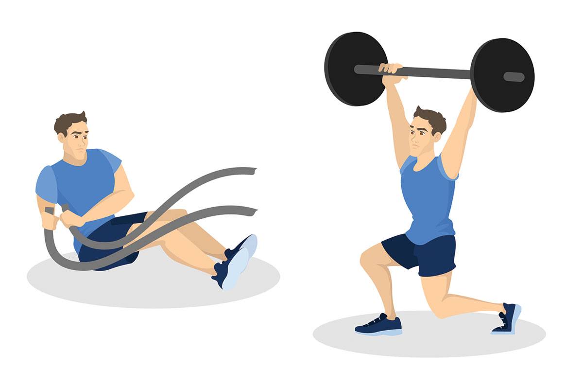 Отличительная особенность таких тренировок – высокая интенсивность и непрерывное замещение одного упражнения другим. Составляющими кроссфита являются: