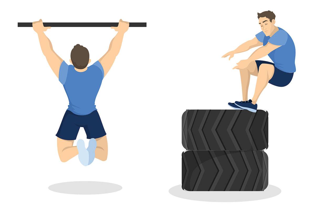 Типичный тренинг могут составлять занятия на гребном тренажёре, бег на короткие дистанции, работа с весами (гантели, штанга, гири), лазанье по канату, упражнения на гимнастических кольцах, перекатка шин огромного размера.