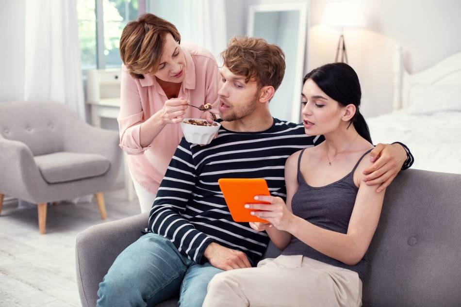 Мама в курсе вашей жизни, причем во всех подробностях. Как правило, у мужчины и женщины должны быть свои секреты и какие-то личные ситуации. Когда появляется третий человек — мама, то сразу начинаются проблемы. Маменькин сынок постоянно рассказывает все матери и она знает о каждой мелочи, даже то, что происходит в вашей постели