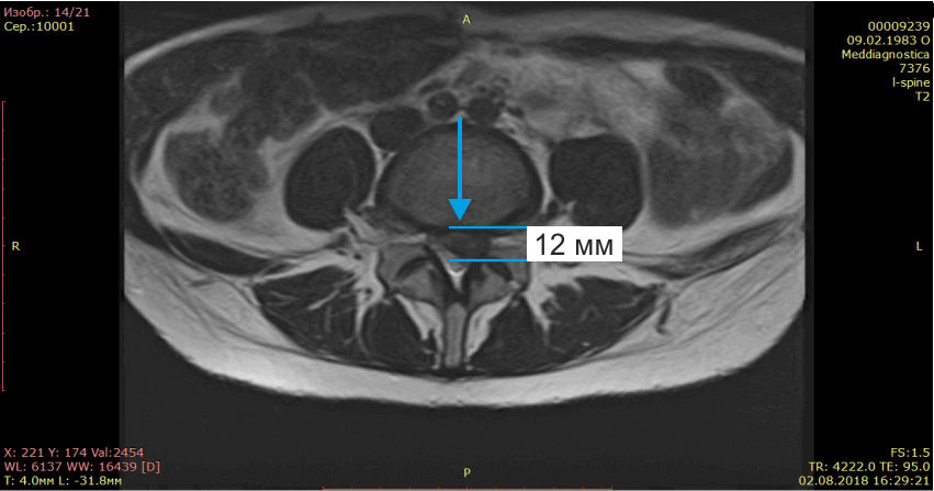 Осмотрели Ирину неврологически и ортопедически, исследовали позвоночник на МРТ и рентгене. Оказалось, что у нее очень большая левосторонняя грыжа размером 12 мм.