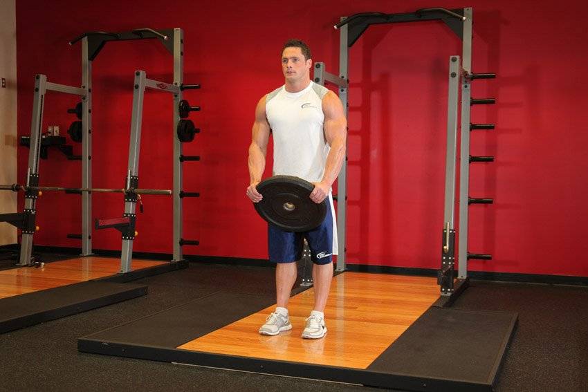 - Махи руками с гантелями в руках (каждая из них должна весить около 15 кг);