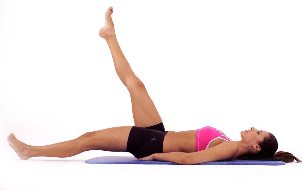 Лягте на спину, положите руки по бокам туловища и вытяните ноги. Держа ноги вмести и спину прямо, поднимите ноги вверх на 90 градусов. Задержитесь в таком положении не надолго, а затем опустите их на пол. Выполните 3 подхода по 15 подъемов ног.