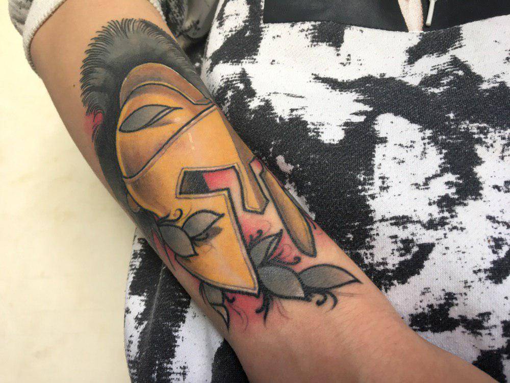 рассказывает Артем о моменте, когда ему сделали татуировку. Рисунок он выбрал сам и вполне осознанно: «Я хотел именно спартанский шлем … Мне нравится Древний Рим, все,