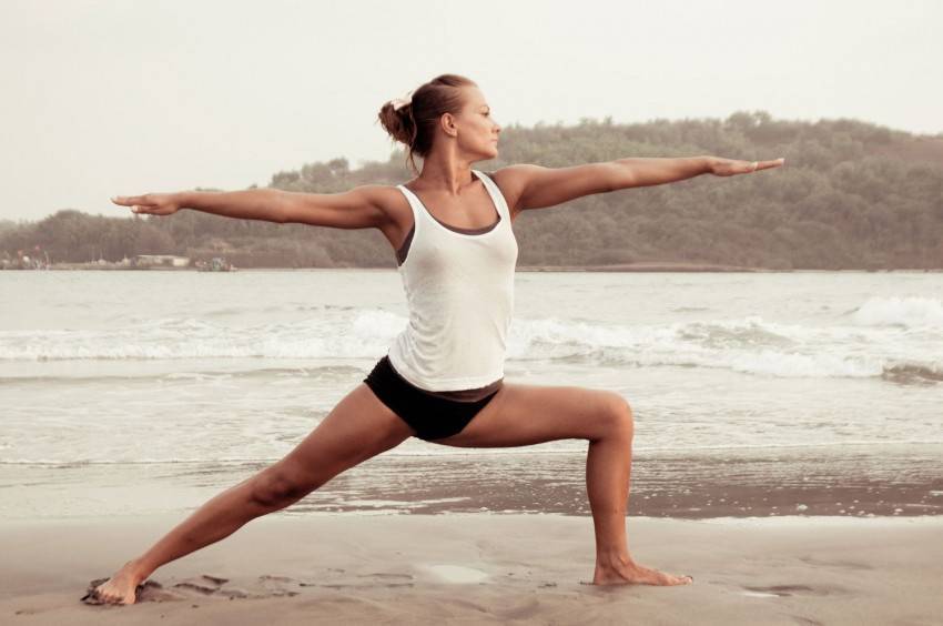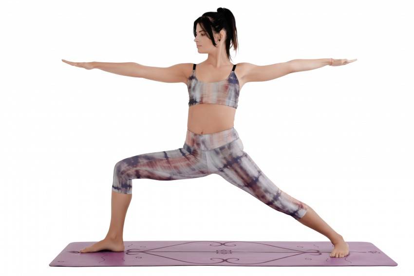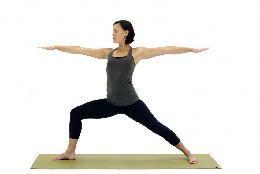 Левую стопу развернуть таким образом, чтобы ее пальцы были повернуты в сторону. Туда же нужно развернуть корпус. Правая стопа должна направляться вперед, а правая нога — согнута в колене, формируя 90-градусный угол. Правую руку протягивают вперед — параллельно правой ноге, вторую — назад, параллельно земле. Взгляд — прямо. Можно зафиксировать взгляд на пальцах вытянутой руки. Точное положение данной позы йоги стоя — на фото.