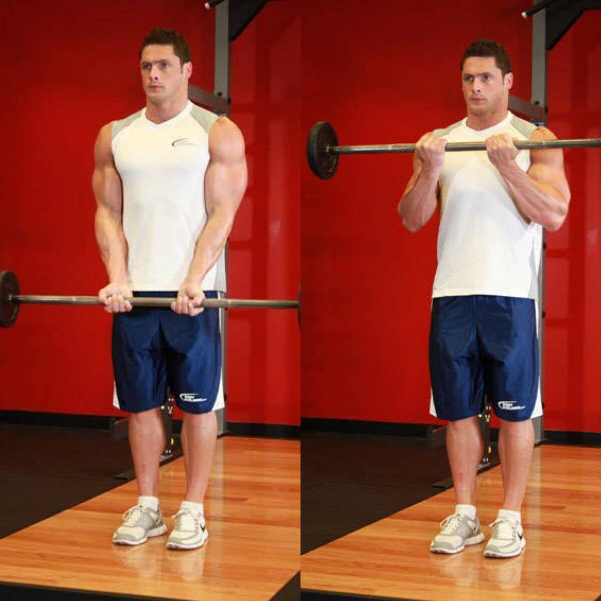 - Движение продолжают до полного сокращения бицепсов и достижения штангой уровня плеч.
