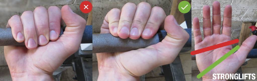 Не стоит экспериментировать с видами хвата. Наиболее правильно выбирать закрытый хват, когда гриф находится в кольце между пальцами.