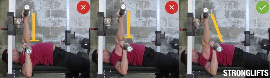 Удаление локтей от боков более, чем на 45 градусов может привести к травмам. А верное положение локтей лучше нагружает грудные мышцы, дельты и трицепсы.