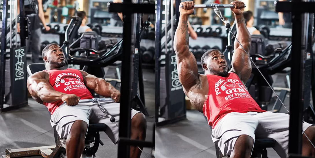 Зачем это делать? Выполнение упражнения, когда скамья установлена под таким углом, позволяет хорошо прокачать нижнюю часть широчайших мышц там, где они соприкасаются с позвоночником. Кроме того, наклонная скамья вынуждает применять узкий хват, что стимулирует рост целевых мышц в толщину.
