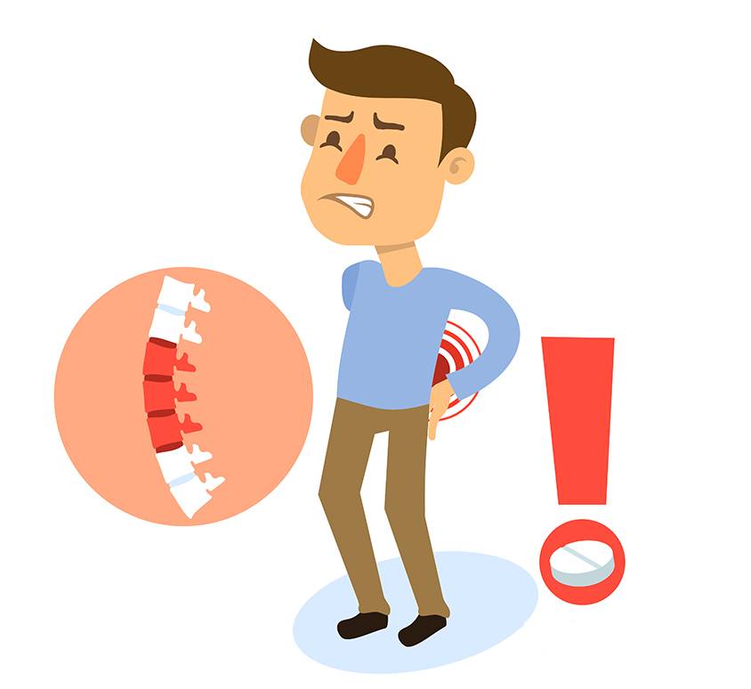 На боль реагируют мышцы, окружающие позвоночник. В них возникает напряжение. Из-за этого больной может находиться в анталгической позе – такой, в которой боль беспокоит не так сильно. Постепенно это приводит к искривлению позвоночника.