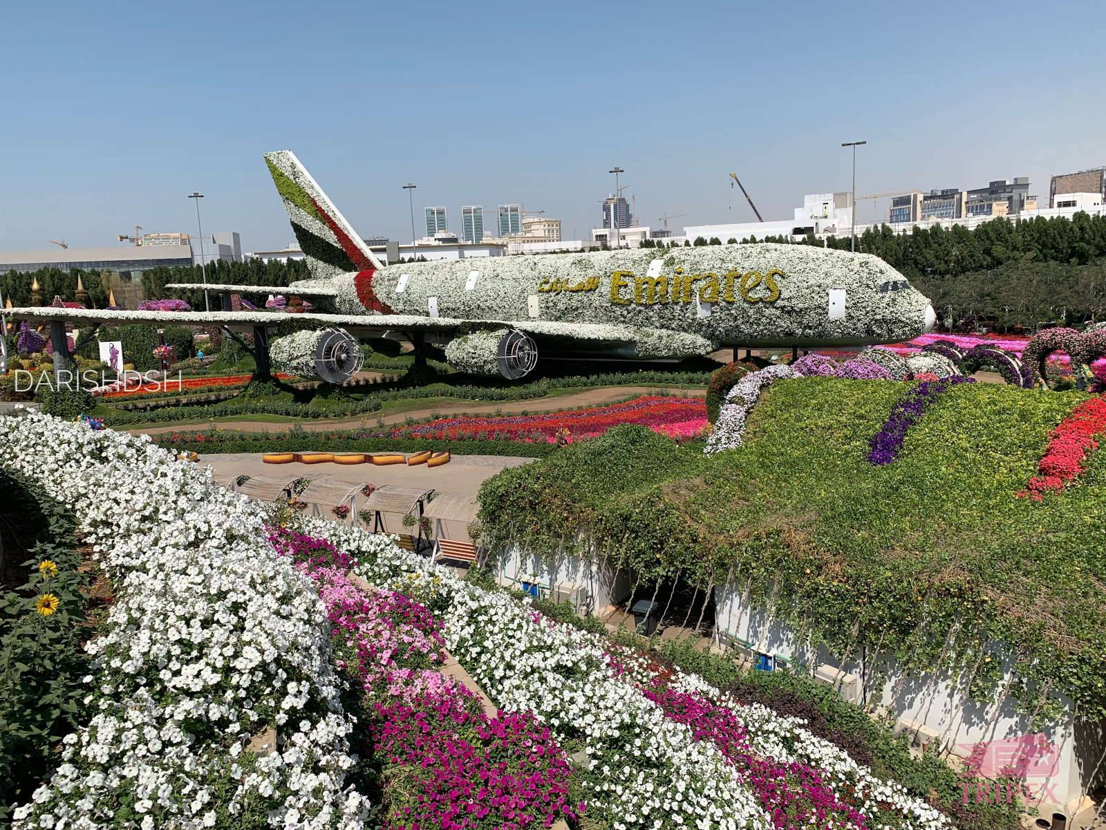 Что еще посмотреть в Дубае самостоятельно — Парк цветов Dubai Miracle Garden. На его территории располагаются огромные цветочные инсталляции: дома, герои диснеевских мультиков и даже самолет реальной величины (на фото)! Удивительное сочетание — зеленый оазис в окружении пустыни. Добраться до парка можно на автобусе 105 от станции метро «Mall of the Emirates».