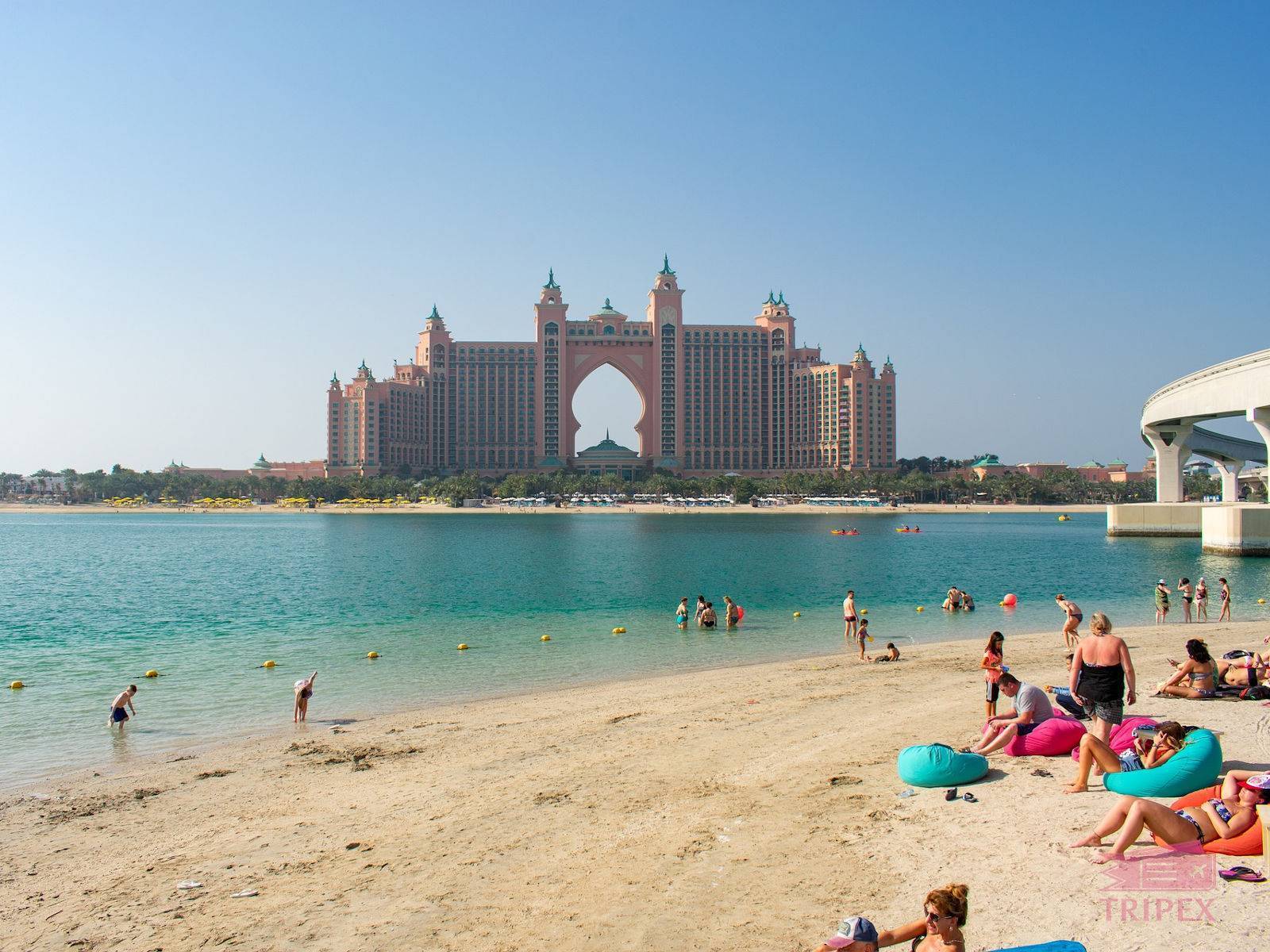 Вход на пляж платный только для мужчин (сумма за вход – это депозит, который можно потратить в баре или ресторане). Пляж находится на искусственном острове Пальм Джумейра, еще одной достопримечательности Дубая.