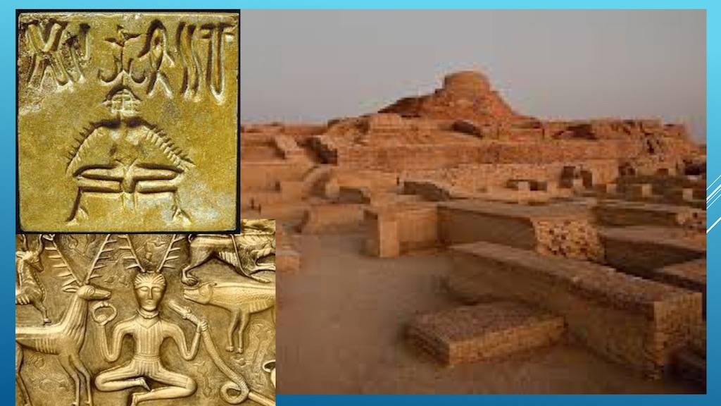 Первое материальное свидетельство о происхождении йоги произошло в конце 19 века, при археологических раскопках памятников протоиндийской городской цивилизации Махенджо-даро и Хараппы (возраст которых аналогичен древности первых династий Древнего Египта)