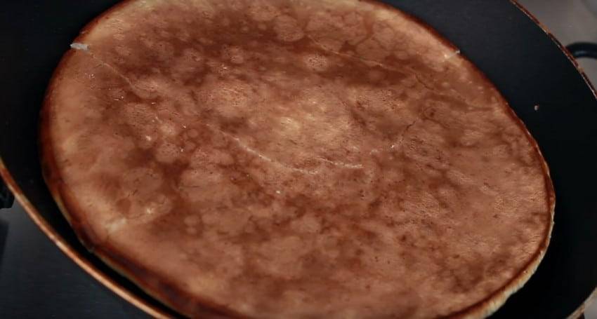 - Выпекать на разогретой сковороде большой блин или разделить на маленькие.