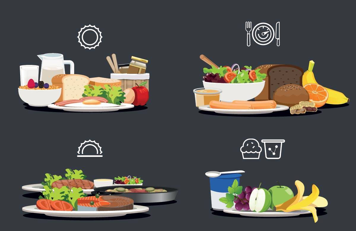 Варианты дневного рациона в соответствии с пищевой пирамидой