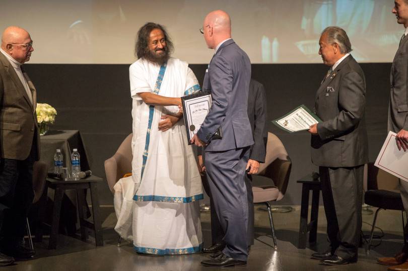 Шри Шри Рави Шанкар получает награду за достижения в области гуманитарной помощи в Центре толерантности Лос-Анджелеса