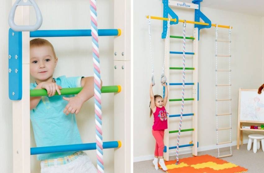Покупая шведскую стенку для маленьких детей, стоит позаботиться о наличии подходящих комплектующих для определенного возраста