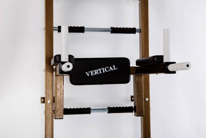 упор для пресса представлен спинкой с мягкой обивкой и подлокотниками, которые навешиваются на стенку;