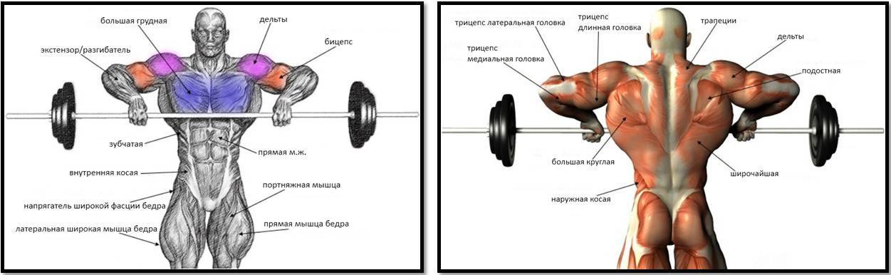 Относится упражнение к многосуставным, а работающие во время него мышцы такие: