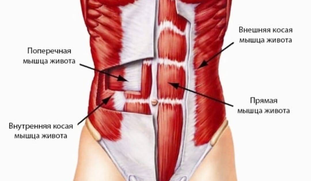 - поперечную – глубинная мышца, залегающая под косой мышцей;