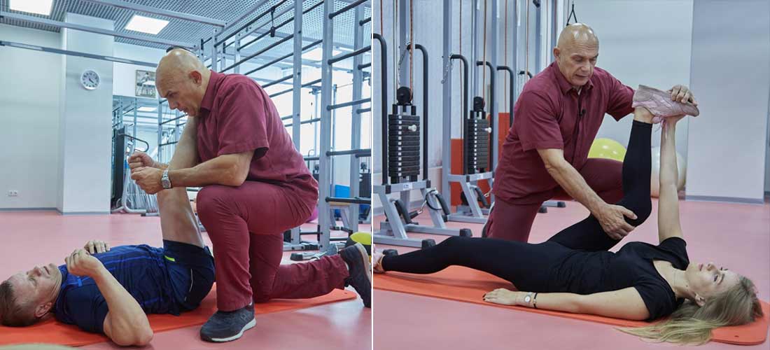 Первый этап – начальное восстановление подвижности ног, растяжение мышц. Все движения выполняются так, чтобы поясница не получала большой нагрузки.