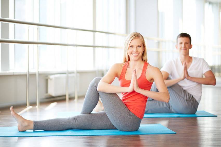 - возьмите коврик (без него выполнять позы лёжа и сидя бывает весьма неудобно);