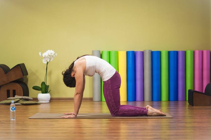 - при необходимости нужно взять подручное снаряжение — валик, ремень, блок (эти вещи помогут вам выполнять самые простые варианты асан, если у вас плохая гибкость);