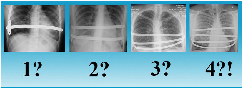 Изначально метод Насса был разработан для одной пластины. Но все чаще мне приходится использовать 2 и иногда даже 3 пластины. Причина в следующем: у пациентов с вогнутой грудиной создает давление, направленное вниз. Чем глубже вмятина или старше пациент, тем больше она вдавливается внутрь. При использовании единственной пластины для коррекции создается очень сконцентрированное локализованное давление в одном месте, а также есть тенденция к перевороту пластины из-за того, что она находится под сильным натяжением. Поэтому при использовании нескольких пластин ощущения пациента менее болезненны и меньше шансов переворота пластины. Также есть свидетельства, что установка нескольких пластин дает более удачный косметический эффект. Хотя для молодых пациентов с небольшими деформациями одной пластины может быть вполне достаточно.